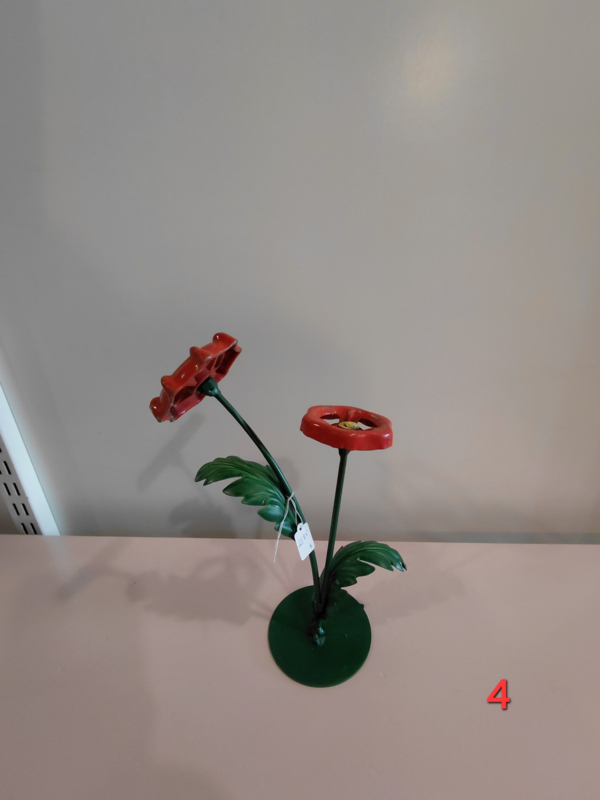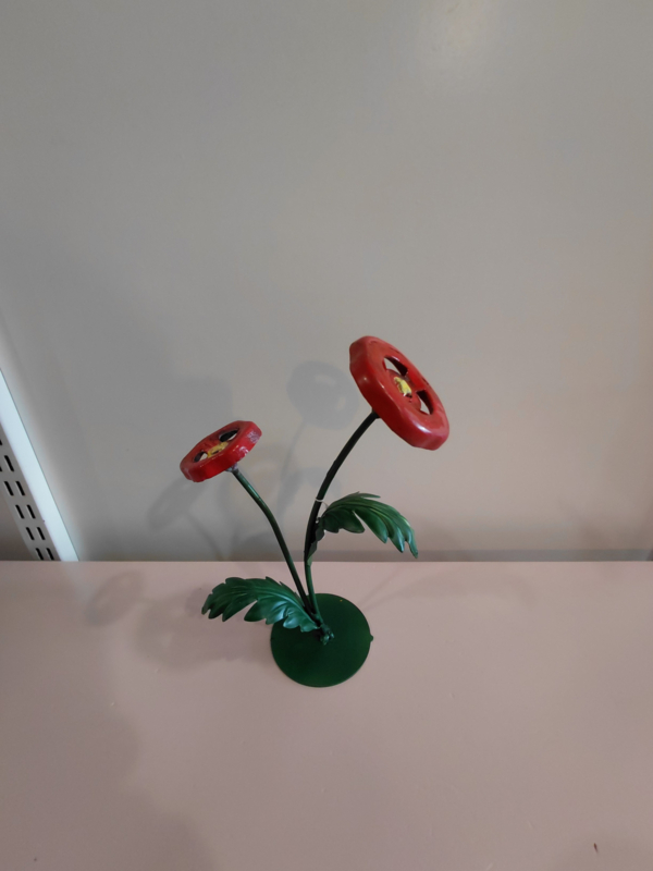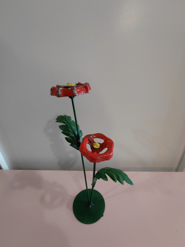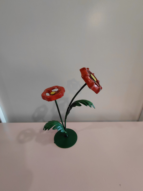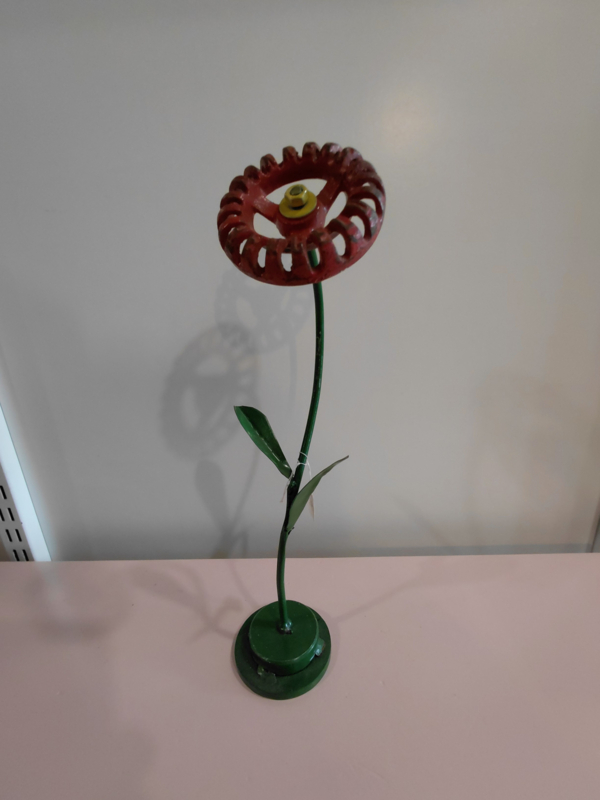Diverse industriële bloemen op metalen voet. Deze zijn in onze eigen werkplaats gemaakt waar creativiteit en duurzaamheid centraal staan.