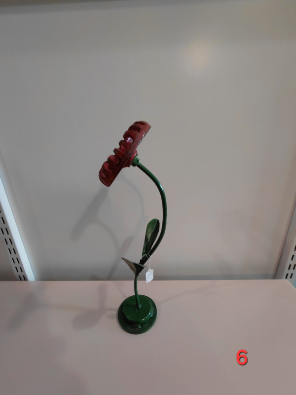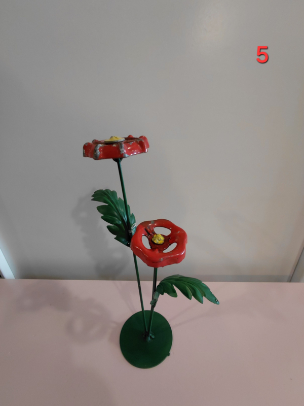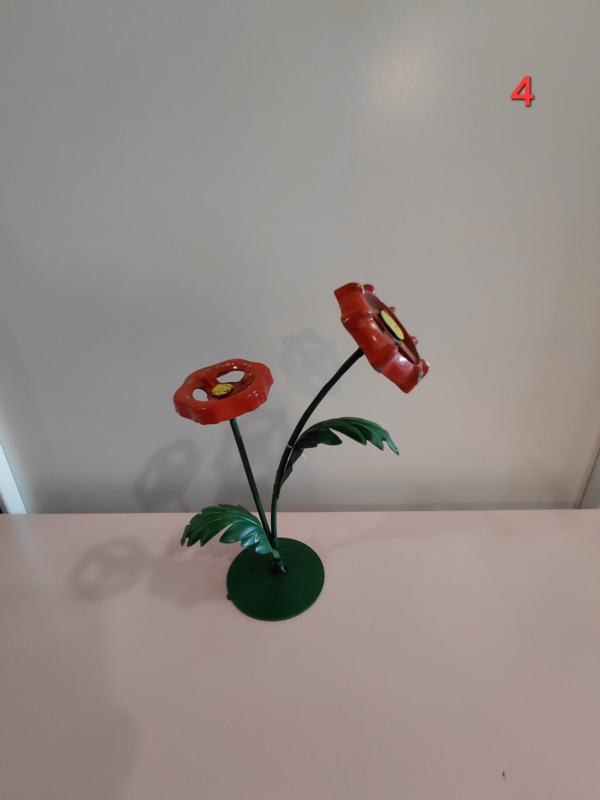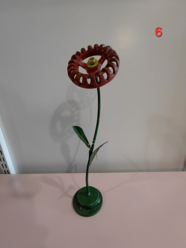 Diverse handgemaakte bloemen van metaal. Wij hebben daarvoor o.a oude afsluiters gebruikt. Alles is in eigen beheer gemaakt in onze werkplaats gemaakt waar duurzaamheid en creativiteit centraal staan