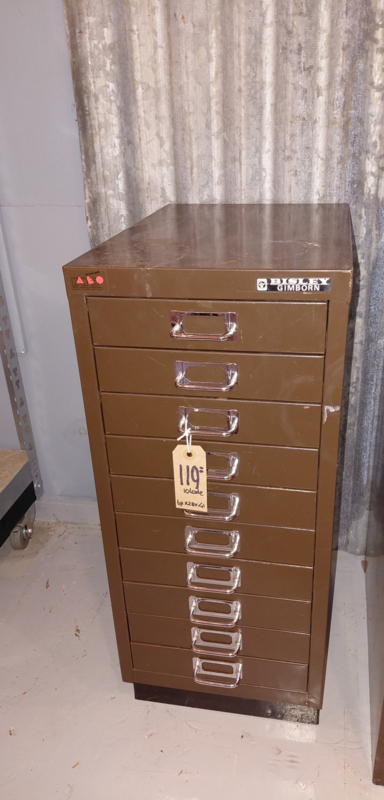 Vintage ijzerenladekast 10 lade's bruin