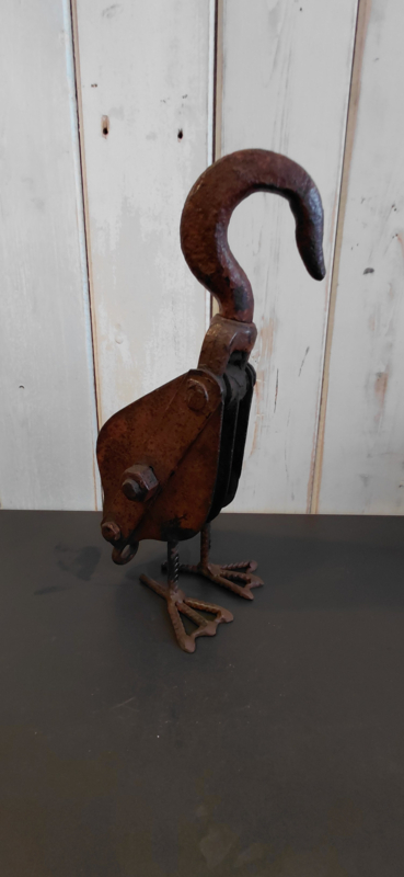 Vogel van metaal gemaakt van oude katrol