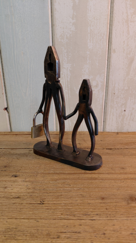 deze creatie van moeder met kindje is gemaakt in onze eigen werkplaats waar creativiteit en duurzaamheid centraal staan. We hebben gebruik gemaakt van twee oude gereedschap tangen en wat rest materiaal an de plaatselijke…