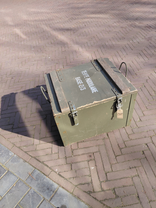 Oude munitiekist uit het leger wat nu te gebruiken is als decoratie of speelgoedkist Afm 59x40x40cm